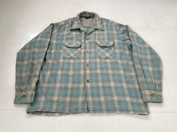 60s Pendleton Shadow Plaid Board Shirt XL Turquoise