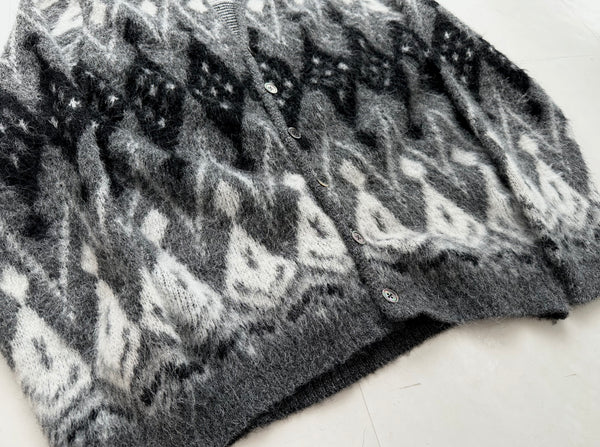 60s ヴィンテージ CAMPUS モヘア カーディガン ダイヤモンド XL グレー&ブラック