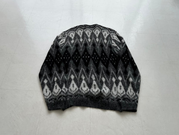 柄物のモヘアカーディガンで最も希少なダイヤモンドパターン、そして初見の大変珍しいグレー&ブラックボディ。