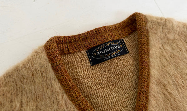 60s PURITAN モヘアカーディガン XL キャメル&ダークブラウン