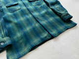 70s ヴィンテージ TOWNCRAFT オンブレチェック ウール ループシャツ L グリーン