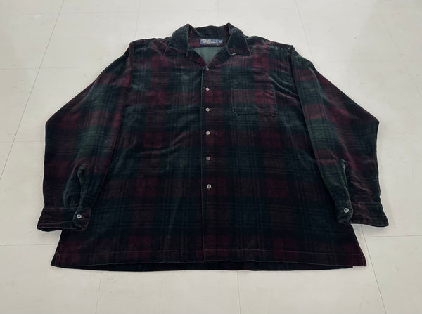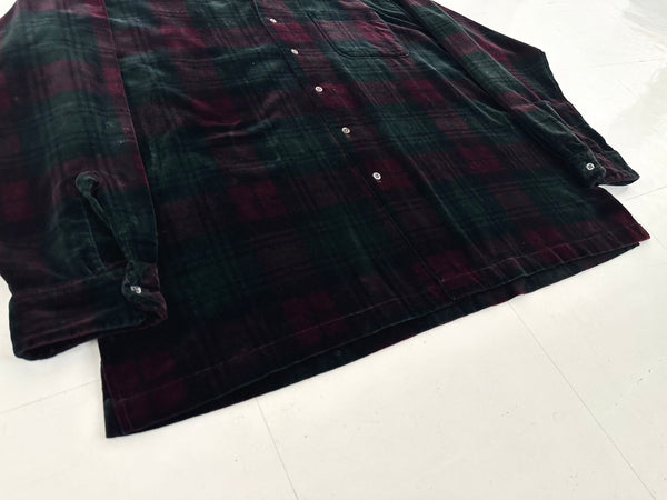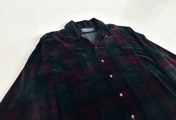 80s ポロラルフローレン ベロア チェック L/Sシャツ XL