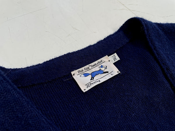80sヴィンテージThe Fox Sweater アクリル カーディガン L TALL ネイビー
