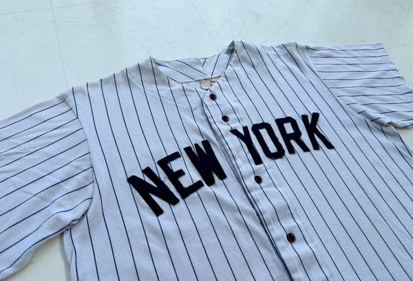 90s NY Yankees Majestic ストライプ ベースボールシャツ XL