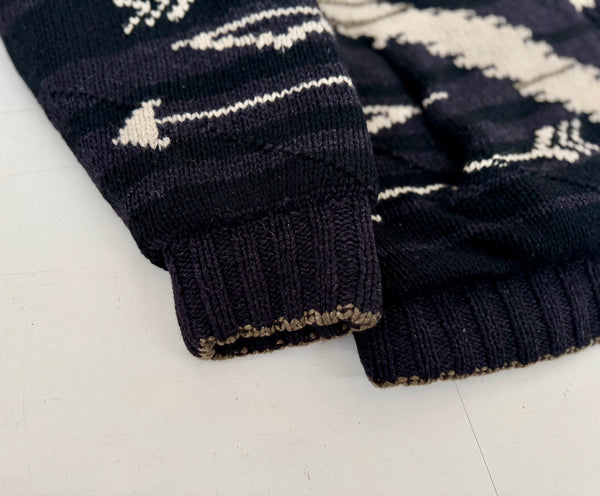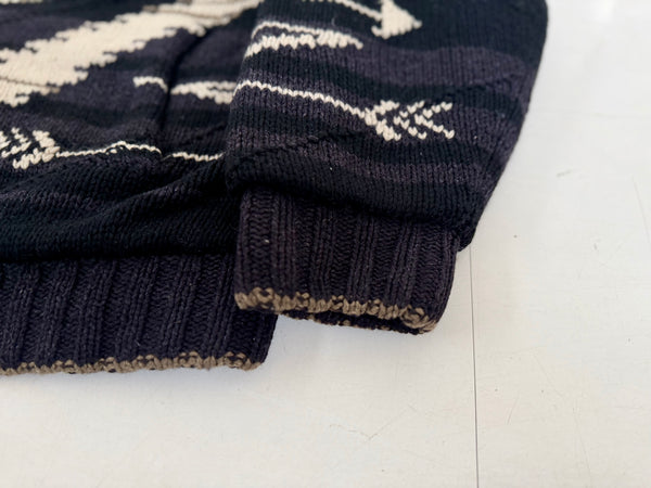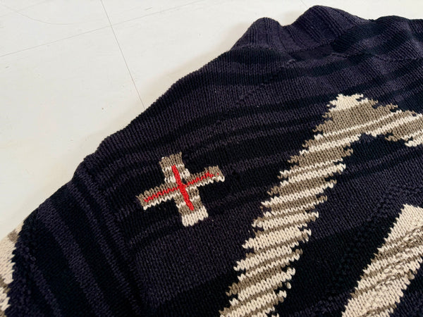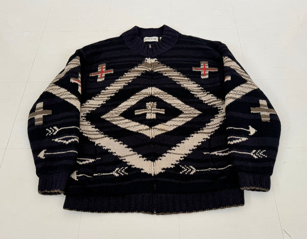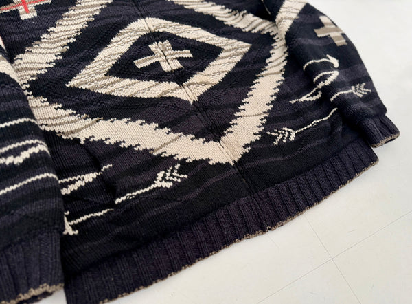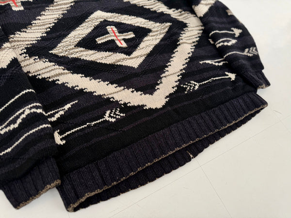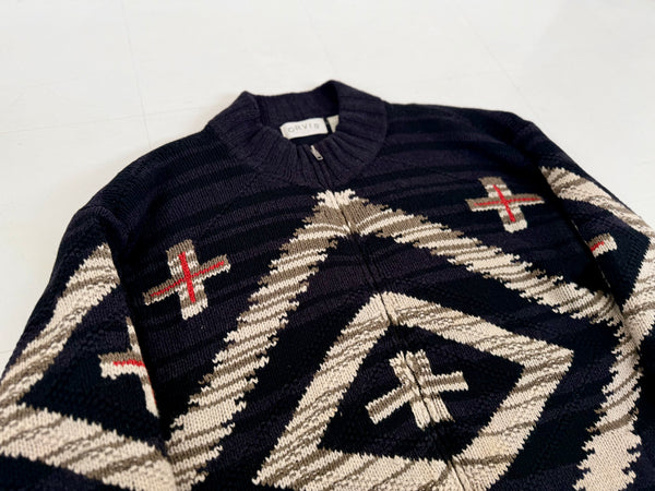 90s ORVIS ネイティブパターン ニットジャケット L ブラック