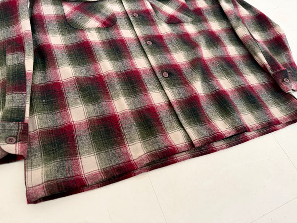 90s ペンドルトン オンブレ ウール ボードシャツ L レッド