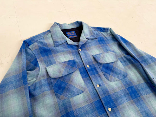 90s ペンドルトン オンブレチェック ボードシャツ M ブルー