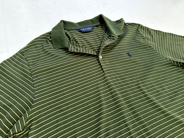 90s POLO GOLF ボーダー ポロシャツ L カーキ