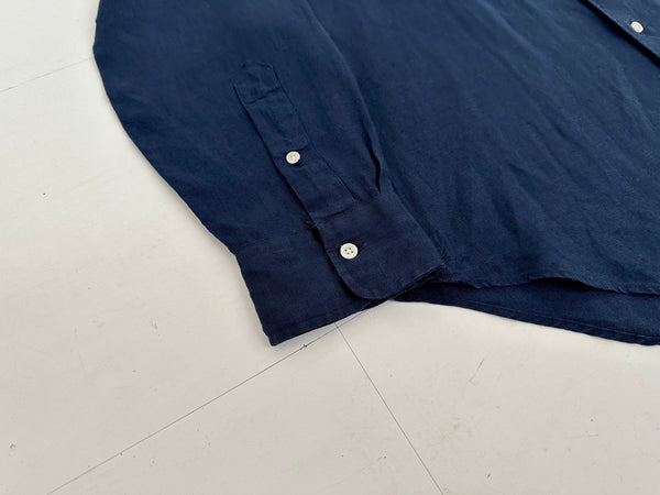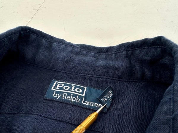 90s ポロラルフローレン 100%リネン L/Sシャツ L ディープネイビー