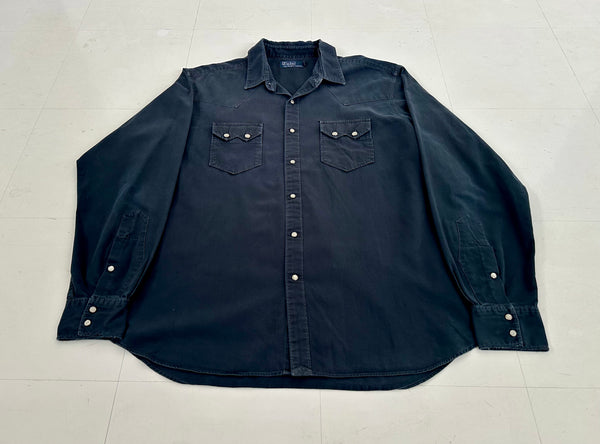 90s ポロラルフローレン コットン ウエスタン L/SシャツXL ブラック
