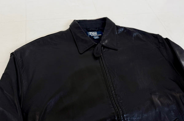 90s ポロラルフローレン レザー スウィングトップ ジャケット L ブラック
