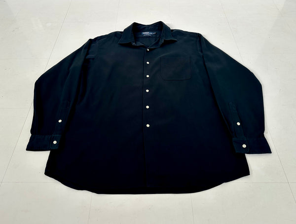 90s ポロラルフローレン MARLOWE シルク コットン L/Sシャツ XL ブラック