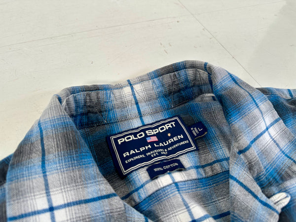 ポロスポーツ オンブレチェック ループ L/S Shirt L ブルー&ホワイト