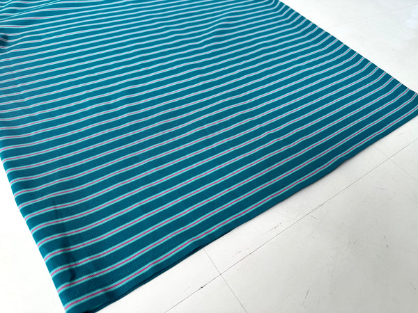 目を引く発色の良いエメラルドカラーのボーダーパターン。