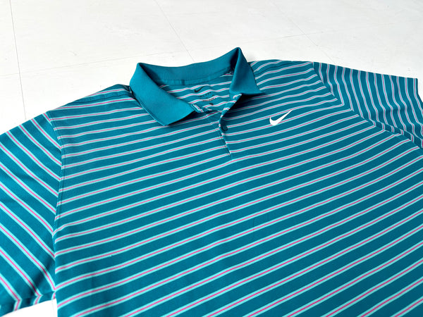 Used NIKE DRI-FIT ボーダー ポロシャツ XL エメラルド